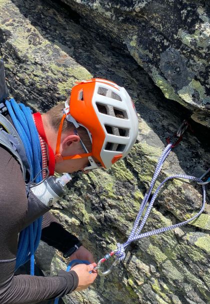 Ce stage de 4 jours s’adresse aux grimpeurs de niveau intermédiaire à avancé souhaitant approfondir leurs compétences en escalade alpine. Encadrés par un guide de haute montagne certifié, les participants perfectionneront les techniques de progression et de sécurité en grande voie équipée et en terrain d’aventure (TA). Le terrain d’aventure désigne des voies où les points d’ancrage fixes sont absents ou insuffisants, obligeant les grimpeurs à poser leurs propres protections (coinceurs, friends, sangles, pitons) pour s’assurer . L’objectif est de gagner en autonomie sur des grandes voies alpines, en apprenant à préparer une course en montagne, à gérer une cordée en paroi, et à maîtriser le matériel et les manœuvres de corde essentielles en toute sécurité.